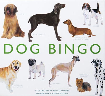 This beautifully illustrated bingo game features 64 breeds of dog from around the world. Spot all kinds of dogs - from the tiny chihuahua to the noble Great Dane, from the sleek saluki to the dreadlocked Hungarian puli, mark them off on your card and bingo! Dog Bingo brings a fun and educational twist to the traditional game as players learn the names and colourings of both their favourite breeds and weird and wonderful exotic dogs. Contains 64 superbly illustrated dog tokens, one board, 12 bingo cards and brightly coloured counters for you to mark up your card, as well as a leaflet containing basic information and a few quirky traits for all of the dogs featured.